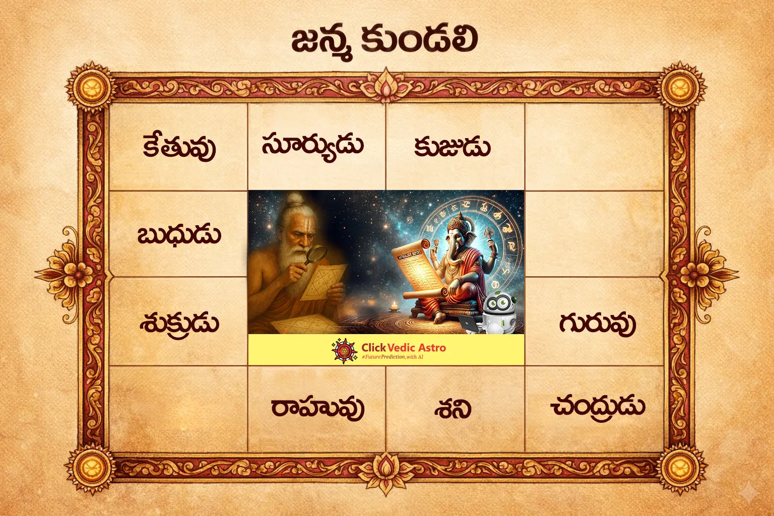 - 🚀 ఇప్పుడే మీ ఉచిత కుండలి పొందండి! 👉 ClickVedicAstro లో ఉచితంగా కుండలి జననం పరీక్షించండి మరియు మీ భవిష్యత్తుకు మార్గనిర్దేశనం పొందండి! 😊